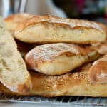 - Lay 3 or 4 ciabatta baguettes on the hot pizza stone. At this point, they can be baked as is.