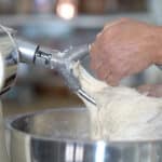- First, pour the water into the mixing bowl and sprinkle in the fresh yeast. Add the flour and salt, then mix on low speed for 15 minutes. Pause the mixer occasionally to scrape down the sides of the bowl and the dough hook.The dough does not need to be mixed beyond this point. We are not aiming for a fully developed dough that passes the 'windowpane test'; instead, we want the dough to be slightly under-mixed. The gluten network will develop during the bulk fermentation.