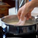 - To begin, gather all your ingredients and prepare your sautoir. A sautoir is a wide and shallow pan with straight sides, perfect for steaming fish. Start by bringing all the ingredients to a boil in the sautoir. Once the liquid reaches a boil, carefully place your fish fillets into the sautoir. Make sure the liquid covers the bottom of the pan to create steam. As soon as the liquid comes back to a boil after adding the fish, cover the sautoir with a lid. Lower the heat to maintain a gentle simmer, allowing the fish to steam and cook through slowly. Depending on the thickness of your fish fillets, steam for approximately 10 minutes for a 1.5-inch/4cm tall fish. Adjust the steaming time accordingly for thicker or thinner fillets.