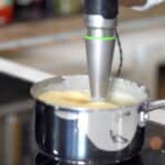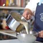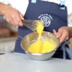 - Bring the infused milk to a boil. Gradually whisk about one-third of it into the egg-sugar mixture.