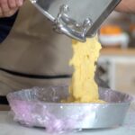 - Fill the prepared mold and spread the mixture evenly with a rubber spatula.