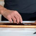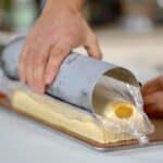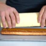 - Calculate the measurement of the yule log inner surface. Trim and cut the viennois biscuit sheet accordingly.