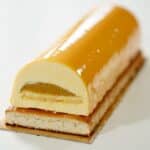 - Pipe out a generous rope of mango compote, and cover to the top with the passion fruit mousse.