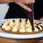 - Pipe two-thirds of the chilled pastry cream evenly over the first puff pastry disk. Add a layer of blueberry-fig spread and fresh blueberries on top of the pastry cream. Take the second puff pastry disk and cut it into 8 equal portions. Arrange these portions over the assembled layers to create a decorative top. Pipe additional pastry cream on top as needed and arrange fresh figs artfully.Garnish with mint leaves for a final touch. Slice and enjoy within 12 hours.