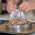 - Gently roll the dough around your rolling pin, then unroll it over the cake ring. Let the dough slump naturally into the corners and sides. Do not stretch it. Stretching causes guaranteed shrinkage during baking. Gently press the dough into the sides and the bottom edge using your thumbs or a small piece of excess dough.