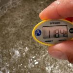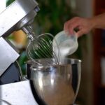 - Lower mixer speed and when meringue temperature reaches 86ºF/30ºC, add butter – Beat on full blast until light and fluffy.