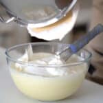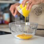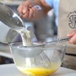 - In a separate bowl, beat egg yolks and sugar for 10 sec.