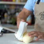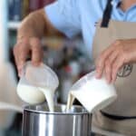 - Bring the rosemary infused half and half back to a boil. Slowly pass the hot liquid through a sieve into the yolks while whisking constantly.