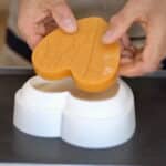 - Make 2 heart apricot inserts, and freeze overnight. De-mold and keep inserts in the freezer until ready to use.