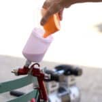 - Make sure you have everything ready before taking the cake out of the freezer. Use the cocoa mixture at ≈100ºF (40-35ºC). Fill the reservoir with the light colored cocoa velvet spray mixture.