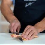 - At the joint where the drumstick meets the thigh, cut through any connective tissue, but avoid cutting through the skin or meat.