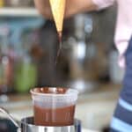 - Using chocolate enrobage (with cocoa butter) allows the cone to get a thiner chocolate coating. The cone can also be dipper immersed in chocolate. Gently melt chocolate over a bain-marie, and remove from the heat. Transfer the barely melted chocolate to a narrow container. Meanwhile, in a small saucepan melt cocoa butter. When melted, add it to the chocolate and mix with the immersion blender. Sieve.
