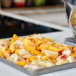 - Make 4 incisions around the peach pit. Remove quarters and cut them into 8 chunks.