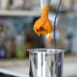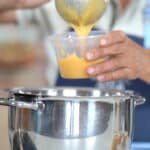 - Blend the thawed raspberries with sugar. Pass through a chinois. Press down to extract as much juice as possible. Discard seeds.