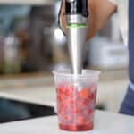 - Give a quick bath to the strawberries, then pat them dry with paper towel sheets or kitchen cloth. Remove the stems, and blend with the sugar.