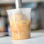 - *Sugar and honey can both be replaced for inverted sugar/trimoline. The shredded coconut is optional. If in use, it can be toasted 5 minutes in a preheated 330ºF/160ºC fan oven. In a saucepan, heat up coconut milk to 140ºF/60ºC. Turn off the heat. Add sugar, honey and mix with the immersion blender. Add toasted coconut; let cool and refrigerate.