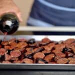 - Rinse the figs under cool, running water. Remove stems and cut them in half. Arrange figs on tray cut side up. Preheat fan oven to 350ºF/180ºC. Roast figs for 25 minutes. Pour over port, and put figs back in the oven. Turn oven off, and leave the roasted figs in for 10 minutes more.