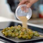 - Cut pear halves in half and spread them onto the baking tray. Sprinkle raw sugar over, and roast pears for 25 minutes at 400ºF/200ºC. Remove from the oven and pour over the pear juice.