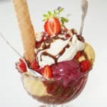 - Transfer sundaes from the freezer to the refrigerator 40 minutes before serving. Spread fresh fruits all over if desired like mango and banana for the exotic and red fruits for the blueberry cassis chocolate sundae.