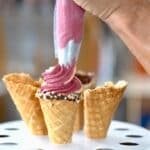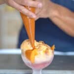 - Drizzle over more coulis, and garnish with fruits, toasted nuts and waffle cones. Serve immediately!