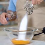- In the bowl, beat the egg yolks with sugar for 30 seconds.