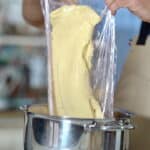 - When ready to use, stir it vigorously with a spatula by hand, or beat it on medium-low speed in a stand mixer with the paddle attachment to restore its smooth consistency.