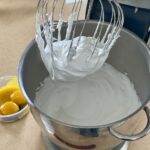 - To begin, start by drawing a 16X8.5-inch/40X21cm rectangle on parchment paper. This will serve as your guide when preparing the cake. Next, lightly oil a baking tray and place the parchment paper on the tray, making sure to position it upside down to avoid direct contact between the ink and the food. Now, it's time to prepare the dry ingredients. Sift the flour with baking powder and set it aside. This step will help ensure that the dry ingredients are well combined and free of any lumps. In a stand mixer fitted with the whisk attachment, start by beating the egg whites with cream of tartar and a portion of the sugar on medium speed. It's essential to allow the egg whites to incorporate as much air as possible before transitioning into a meringue. While the egg whites are beating, preheat your oven to 350ºF/180ºC and gradually increase the mixer speed. Continue beating the egg whites until stiff peaks form, gradually adding the remaining sugar to the mixture. Once the meringue is ready, reduce the mixer speed and add the egg yolks and vanilla extract. Mix until just incorporated, being careful not to overmix. Finally, stop the mixer and gently fold in the sifted flour using a spider skimmer. This technique will help the starch incorporate quickly while preventing the mixture from deflating too much.
