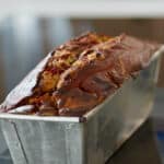 - Bake marbled cake in a fan oven at 330ºF/160ºC for 65 minutes. If using conventional oven, extend baking time. Cake is done when the knife inserted into the middle of the cake comes out clean. Let poundcake cool for half an hour, and de-mold. Let cool completely, wrap in cling film and place in the refrigerator overnight.