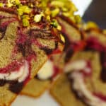 - Brush cake with apricot glaze and top with crushed pistachios. Enjoy!
