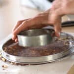 - Trim off each wheel into 9-inch/23cm disk, and make a 4.3-inch/11cm hole in the center. Keep crumble wheels frozen until ready to use.