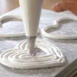 - Make up 2 cake boards slightly larger than the cake with a piece of carton board. Add a dollop of Chantilly and place the first meringue disk onto it. Pipe out a layer of Chantilly.