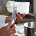 - Cover the sides of the cake with Chantilly, and even out with an offset spatula and give a neat finish to the top as well.
