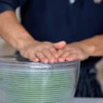 - First off, free parsley leaves from the stems – tiny stems attached to leaves are ok. As it goes for salad, soaking parsley in a water bath helps ensure thorough cleaning without damaging the delicate leaves. It's a gentle way to remove any dirt or debris without bruising the leaves. Renew water until it comes out clean. Drain parsley and remove excess water using a salad spinner, and pat dry with paper towels.