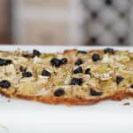 - Garnish with Parmigiano shavings, and serve with seasoned arugula if desired. Cut your pissaladière into desired portions – Bon appétit!