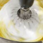 - Lower mixer speed, and add the egg yolks into the meringue at once. Preheated fan oven at 330ºF/160ºC.