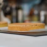 - Bake pistachio biscuit sheet for 30 minutes. Let cool and refrigerate or freeze overnight before using. To un-mold: run a small offset spatula around the borders, top with parchment and tray – reverse.
