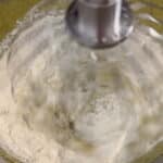 - Lower the speed, add flour and mix for 2 minutes on medium speed until well combined.