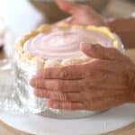 - Carefully wrap cake side with plastic film and place in the freezer for at least 6 hours. Remove cake ring and let thaw in the refrigerator before decorating.