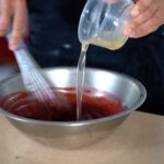 - In a large bowl, warm up raspberry puree to 77ºF/25ºC. Microwave the bloomed gelatin for a few seconds to turn it into liquid stage. Immediately, Incorporate it into the tempered raspberry puree with the whisk.
