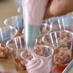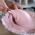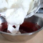 - Add the raspberry mixture into the remaining meringue-whipped cream.