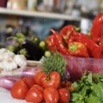 - Halve garlic bulbs and cook them slowly in olive oil and herbs for about 45 minutes. Let cool. At that point, roasted garlic in oil can be refrigerated and be used later. It will anyway, be reheated in your wood-fired oven and served along with the ratatouille.