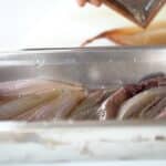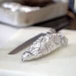 - Next, remove the foil wrapped around the onions. With your serrated knife, cut through it and remove the flesh.