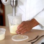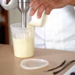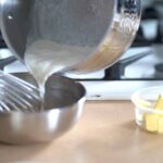 - Temper yolk mixture with one third of the hot milk.