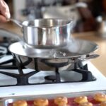 - When it reaches dark amber caramel (345ºF/175ºC) stop the cooking process by touching the bottom of saucepan with water.