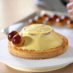 - Pipe some custard onto the pastry.