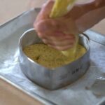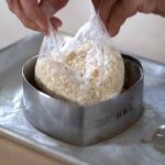 - Grease cake pan and line with parchment. Lay frozen pastry on the bottom.