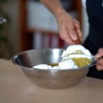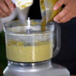 - Lightly toast pistachios and cool. In a food processor, turn pistachio into meal.