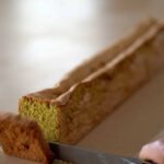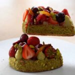 - Cake sides can be coated with a thin layer of ganache and pistachio meal.