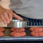 - When ready to bake, arrange 6 cookies per tray. Leave cookie out for 30 minutes, and gently flatten. Preheat oven to 320ºF/160ºC. Pre-bake cookies for 8 minutes. Remove from the oven, and shape each cookie into neat round with the help of cookie cutter.