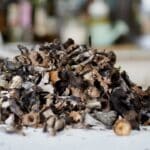 - Black chanterelle or similar mushrooms that have been harvested in the wild, should be washed thoroughly as followed. Trim off the sandy bottoms and soak them in lukewarm water with a splash of white vinegar. White vinegar helps to extract slugs out of mushroom cavities. Change water until it comes out clear and free of dirts. Drain mushrooms and spread them over baking trays lined with kitchen towels and pat dry. Store them for a couple of days in the refrigerator with a piece of paper towel on top. Chanterelle can be kept frozen for months.